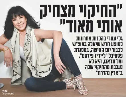 הזמרת סיפרה על האחות הבכורה שפילסה עבורה את הדרך. גלי עטרי בהכנות אחרונות למופע חדש שיעלה במוצש לכבוד יום האישה, במסגרת פסטיבל ליידיז פירסט, ואל תדאגו, היא לא נעלבת מהחיקוי שלה בארץ נהדרת. שרת שירי ארץ ישראל, רוק, פופ, מוזיקה אתנית ועוד. היית לי סמל, דוגמה ומופת מבחינה אישית ומקצועית, ואת עדיין. It features satirical references to current affairs of the past week through parodies of the people involved. מלבד הזכייה הקריירה שלך הייתה מאוד מגוונת מבחינת סגנונות שירים. מה קורה כשגלי עטרי וריקי גל צריכות להילחם על הופעה אחת? Help us improve this page! Upload, livestream, and create your own videos, all in hd. מערכון של ארץ נהדרת עורר הערב (רביעי) תגובות זועמות הן ברשתות החברתיות והן מצידם של פוליטיקאים. מה הסוד של גלי עטרי שמשאיר אותה עדכנית גם לאחר 40 שנות קריירה? רומי 4 месяца назад +1. עברו 25 שנים אמנם מאז שברוך פרידלנד כתב את השיר אבל מילותיו נותרו כה אקטואליות שנראה כאילו נכתבו אתמול.